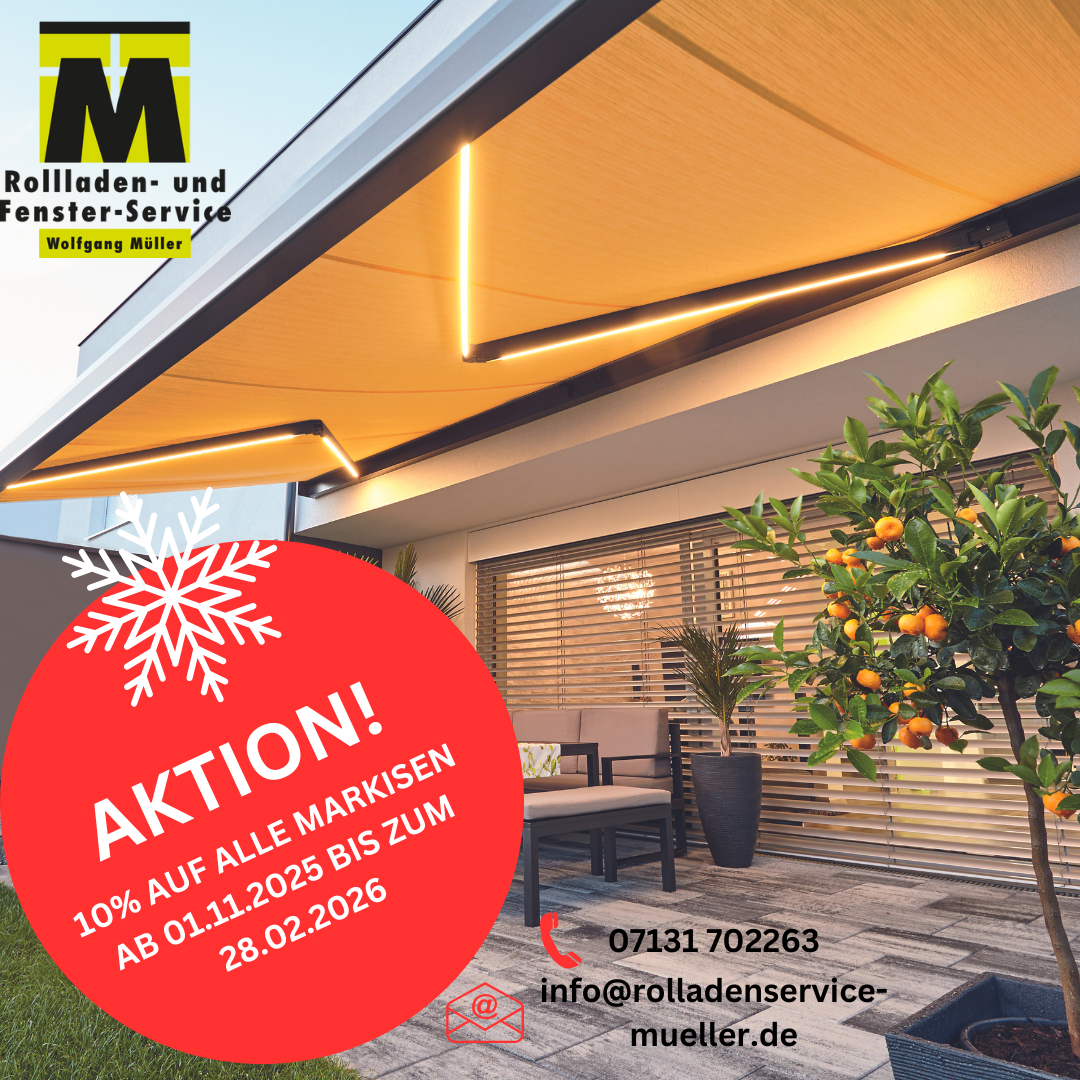 Entspannen Sie auf Ihrer Terrasse bei jedem Wetter. Unsere Markisen schützen vor Sonne und Regen. Lassen Sie sich von uns beraten.